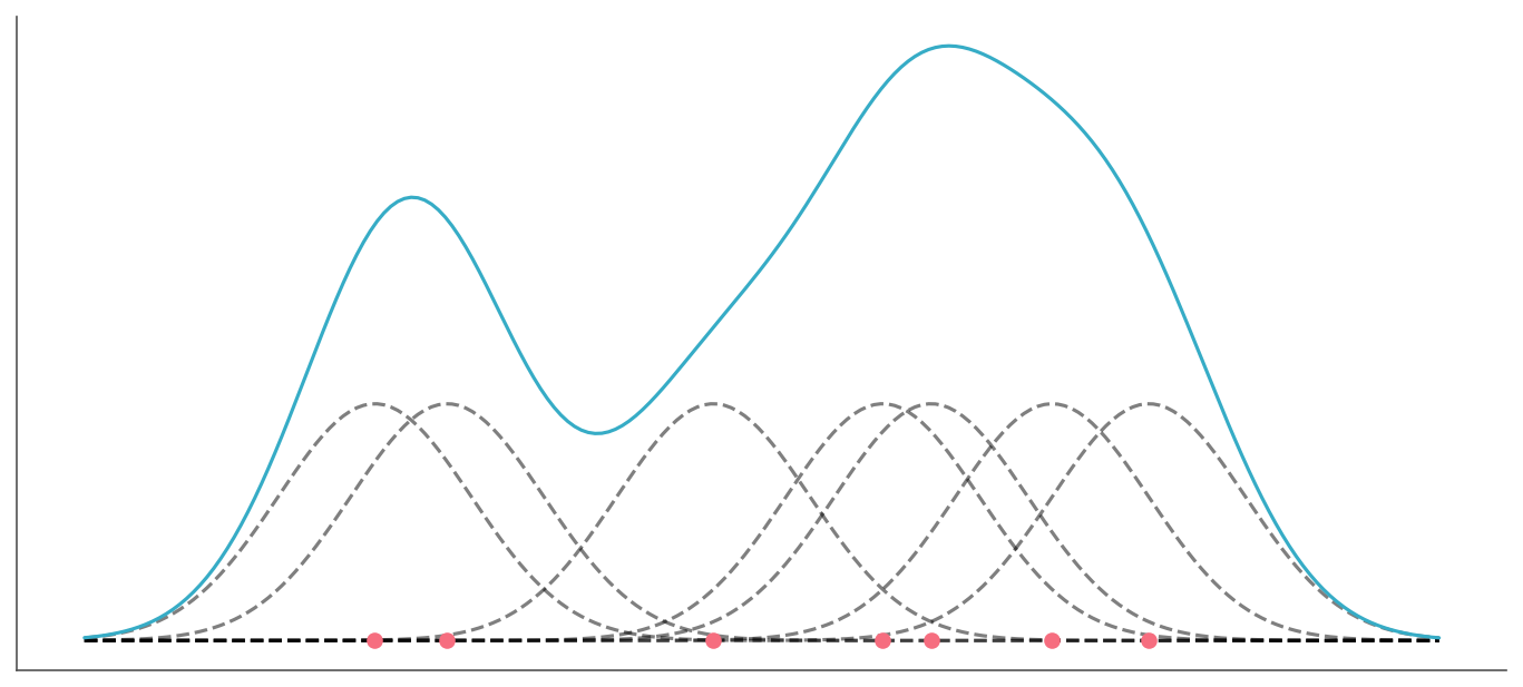 ax.plot(grid, kernels, "k--", alpha=0.5)